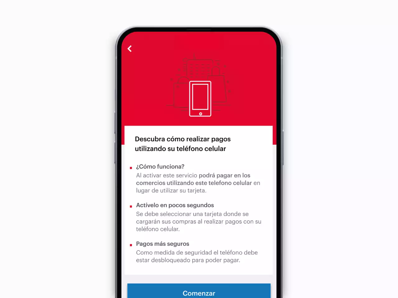 Esta funcionalidad permite a los clientes poder realizar pagos con sus tarjetas débito o crédito de las marcas VISA, MasterCard o American Express sin la necesidad de utilizar la tarjeta física, solo acercando el móvil al POS. Puedes activar esta forma de pagos a través de Banca Móvil siempre y cuando tu teléfono cuente con la tecnología NFC.